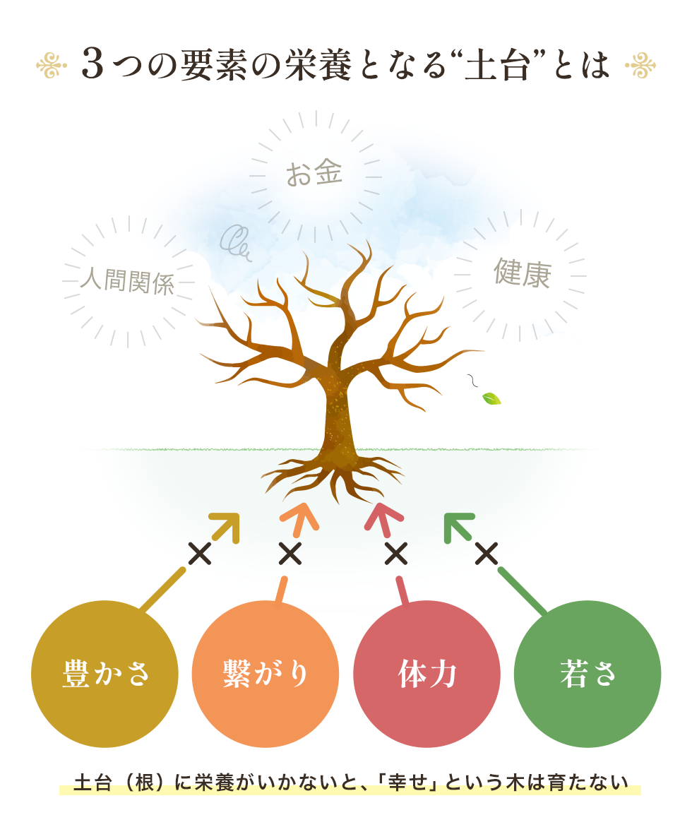豊かさ、繋がり、体力、若さの4つが土台となっています。